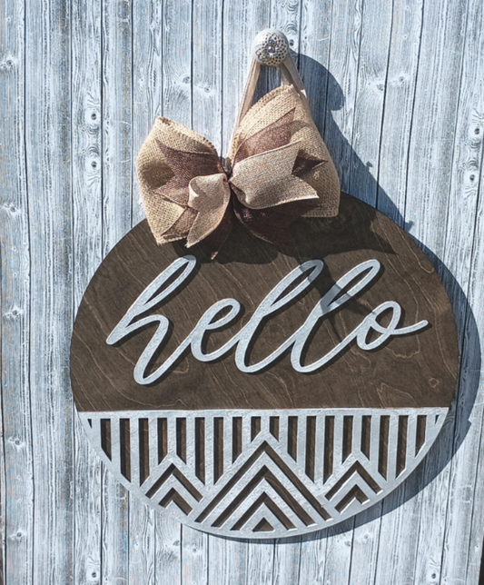 Welcome Door Hanger | Hello Sign for Front Door - 18" Round Wooden Sign