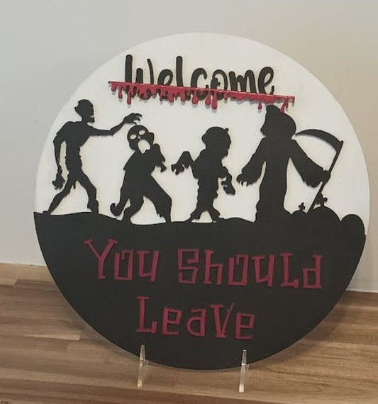 Welcome You Should Leave Halloween Sign – Halloween door hanger